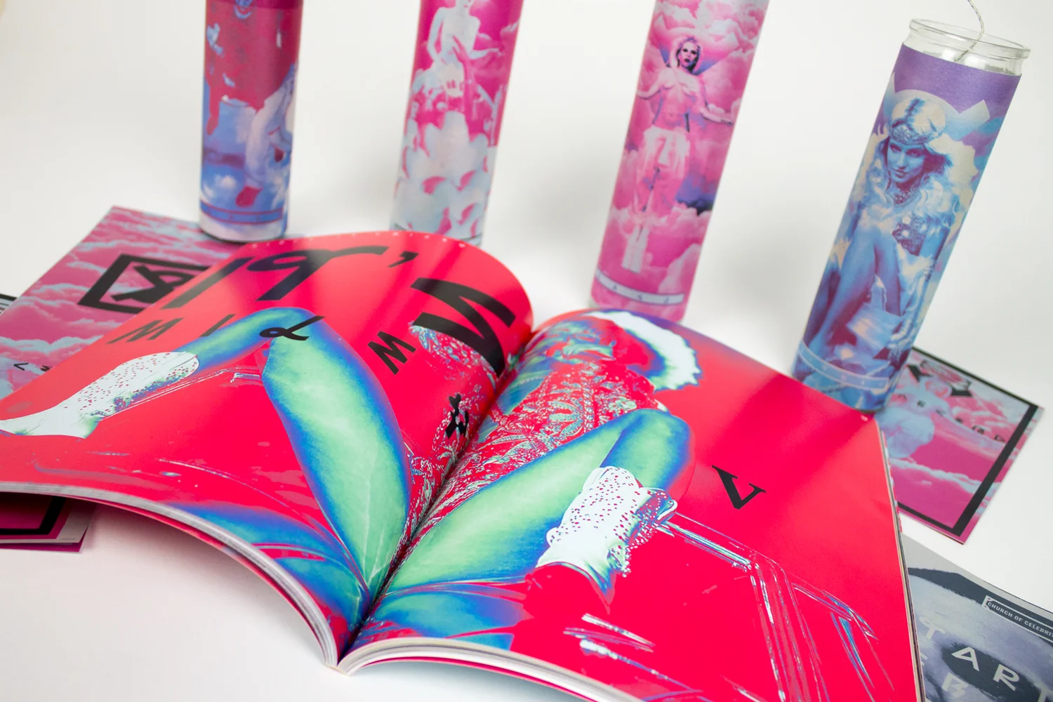 Statement: Why do we care about Britney’s meltdown? And why do we salivate at the thought of Beyoncé and Jay Z’s baby pictures? We're being distracted and playacted by the media, and we don’t mind, because it’s easier that way. The Church of Celebrity (C.O.C) is a critique of celebrity culture posing as a false religion. The C.O.C raises the questions as to why some of us are celebrity and Pop Culture obsessed, I believe it has to do with Evolution and the need to be as close to leaders as possible for survival. It also has to do with the fact that celebrities are just one of us; they were just able to transcend the need to age, and the need of money to pay the bills. Celebrity culture gives the hope that fame can happen to us. With the emergence of media and screens our idols and heroes have transformed from those of moral upstanding to ones based on image. We wear what they wear, and eat what they feed us. The C.O.C. consists of merchandising items of worship; as well as a website, and a Bible that comes out quarterly reflecting the most dominant names in pop culture of that time. The project is a satire on religion and pop culture that uses bright colors and eye candy to raise awareness of how ridiculous it is that celebrities have become our golden standard. At the end of the day, how is our obsession different than a religious cult?